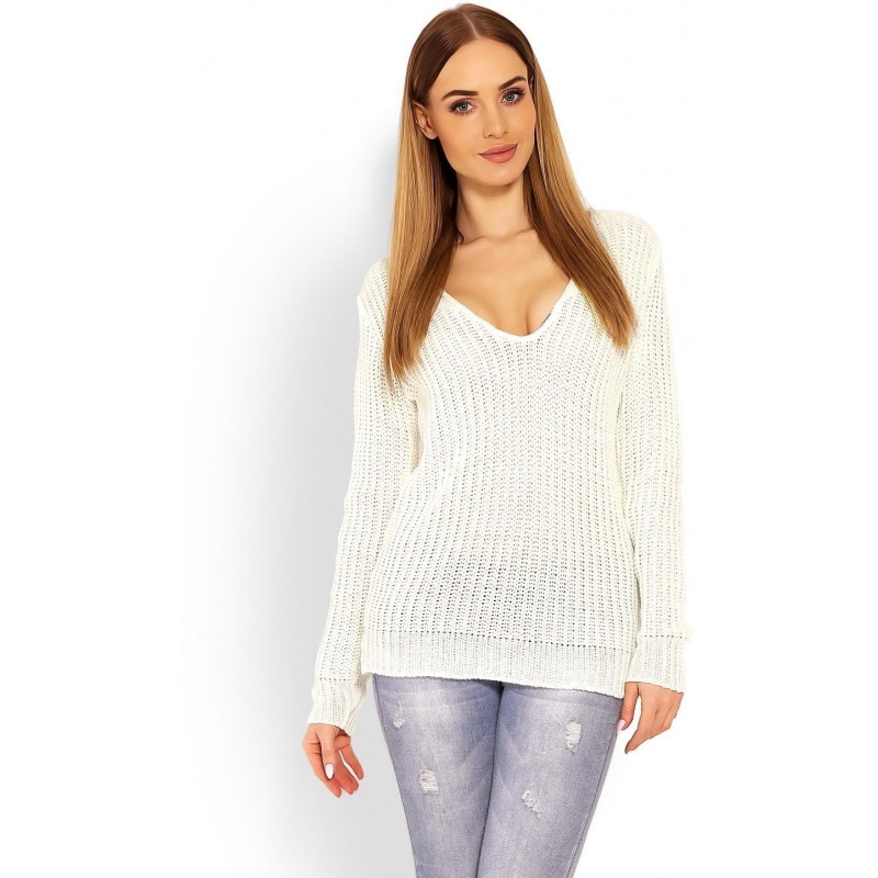 Ľahký dámsky ecru sveter 40007